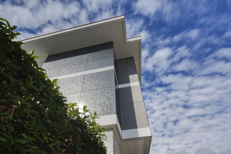 The surface is treated with Electron Beam Curing (EBC), a proprietary technology that enhances resistance to weather and UV radiation. This treatment bombards the panel’s surface with electrons, sealing the pores and preventing dirt from penetrating, thereby protecting the colour.