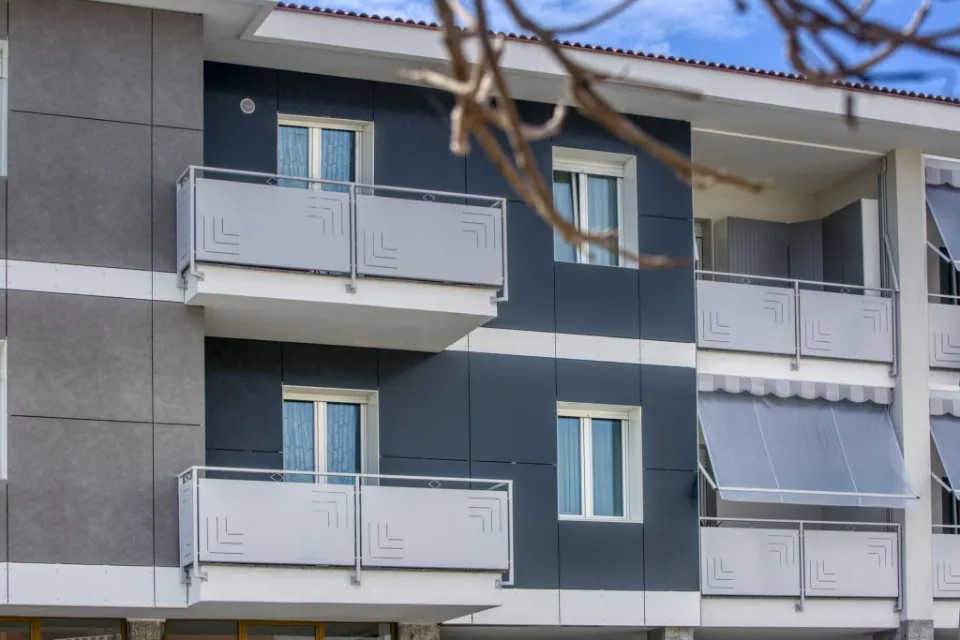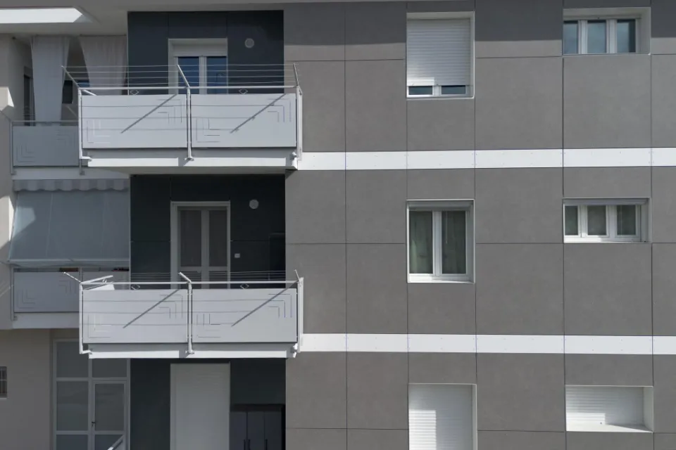This dual-technology approach was necessary due to design constraints on the façades, such as recesses, balconies, and areas where thickness could not be increased.
