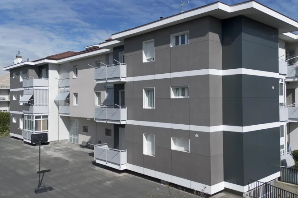 The energy-efficient renovation of a residential building in Druento, in the province of Turin, combines envelope insulation with the replacement of the heating system. Trespa® Meteon® panels, used in three colours and installed as part of a ventilated façade system, contribute to both the thermal and acoustic performance as well as the aesthetics of the project.