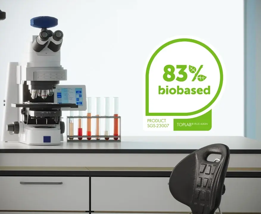 Trespa® TopLab® PLUS ALIGN affronta il tema dell'attenzione all'ambiente, offrendo gli stessi elevati standard qualitativi di Trespa® TopLab® PLUS con un forte impegno nell'utilizzo di materiali rinnovabili.