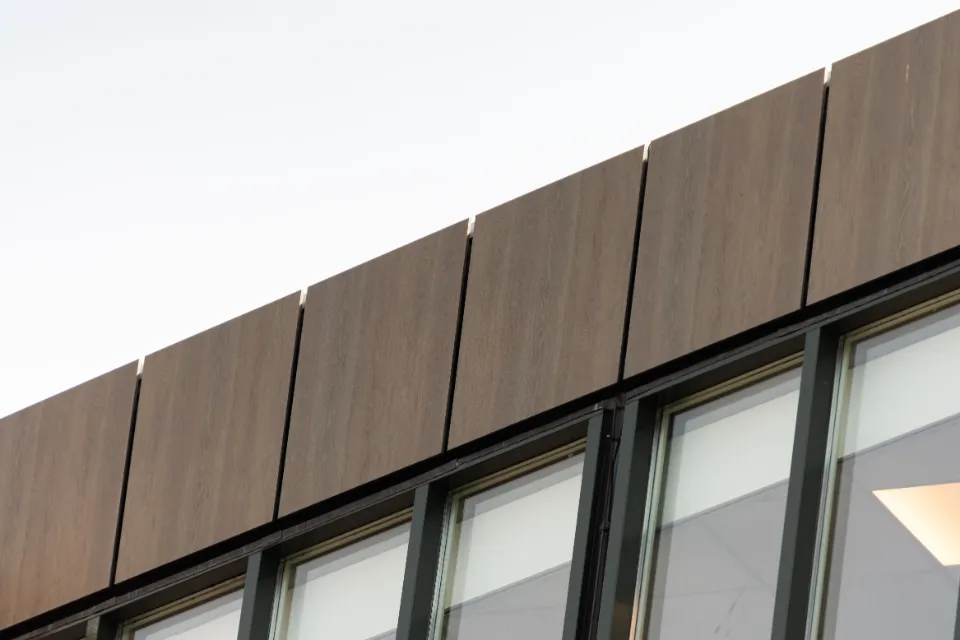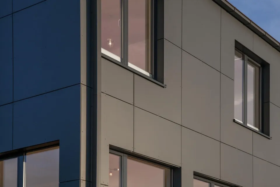 • Materialmente: I pannelli Trespa® Meteon® offrono stabilità del colore a lungo termine, durabilità e finiture precise.